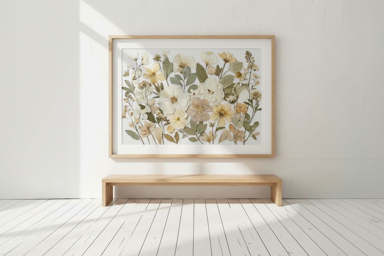Une fois votre commande confirmée, nous commençons à presser et à préparer les fleurs et les feuilles de plantes spécialement pour votre œuvre.