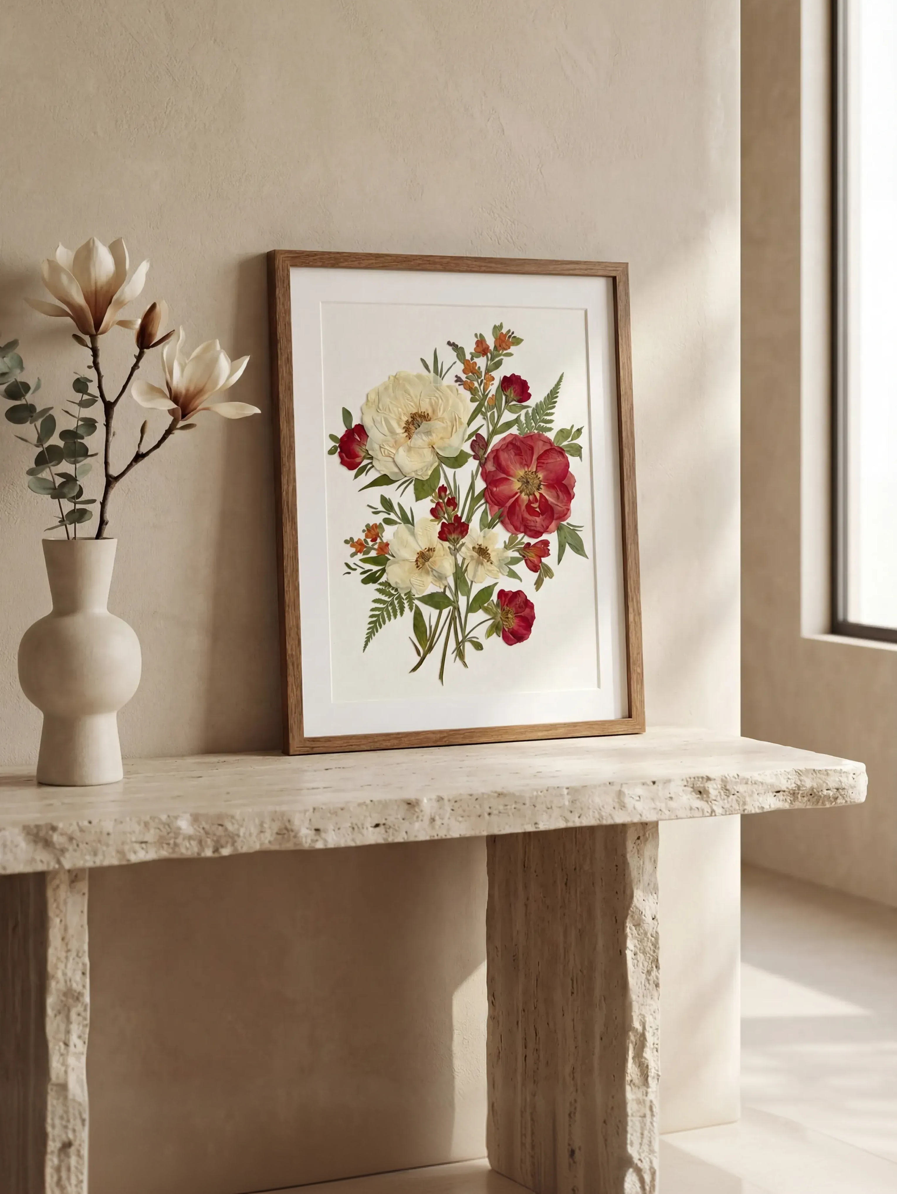 Chaque élément botanique est soigneusement sélectionné, séché et conservé dans notre atelier afin de garantir une beauté et une couleur durables.