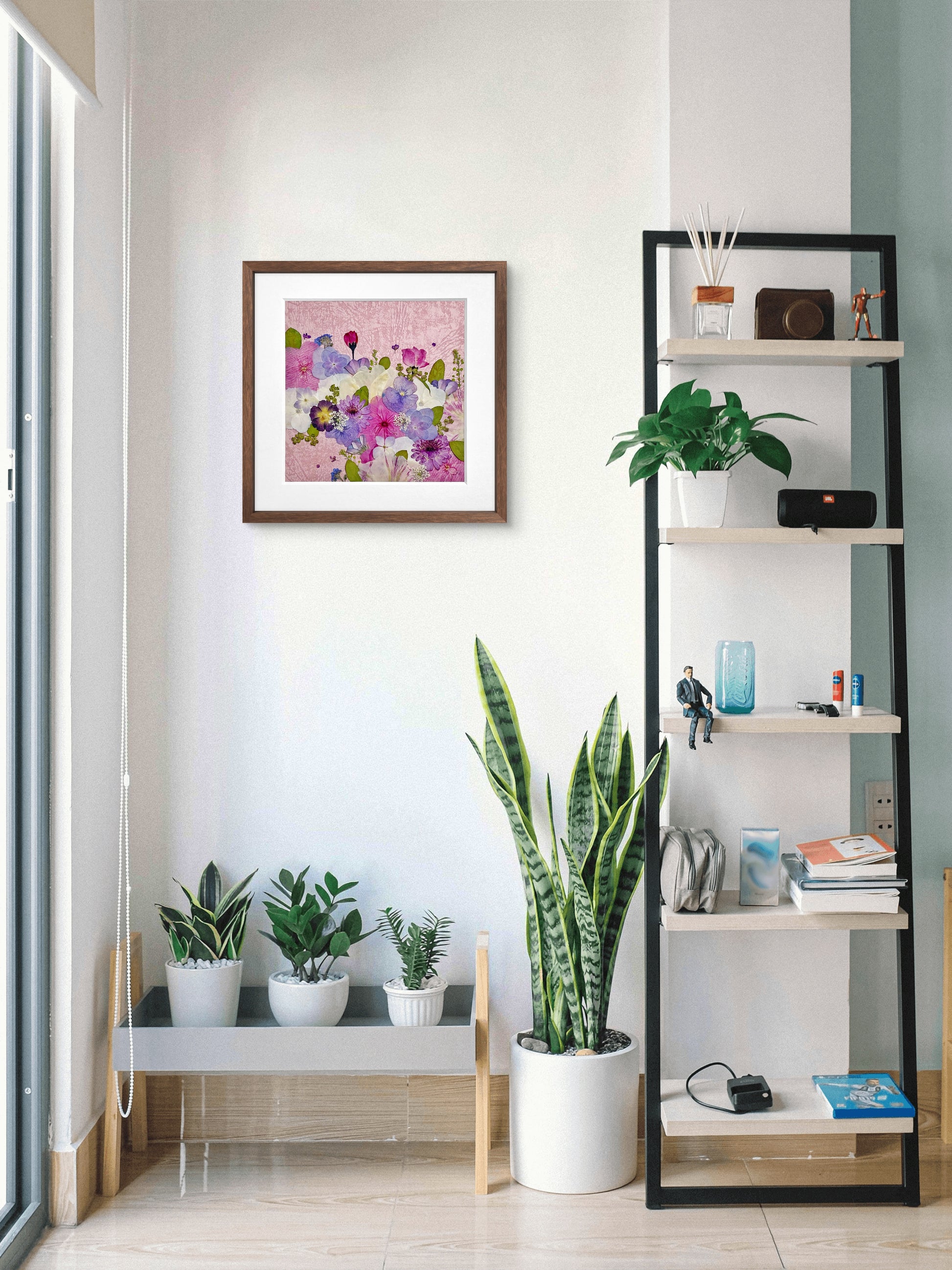 L'œuvre est recouverte d'une plaque acrylique transparente et scellée par un support en aluminium afin d'accroître sa longévité et de préserver sa beauté botanique.