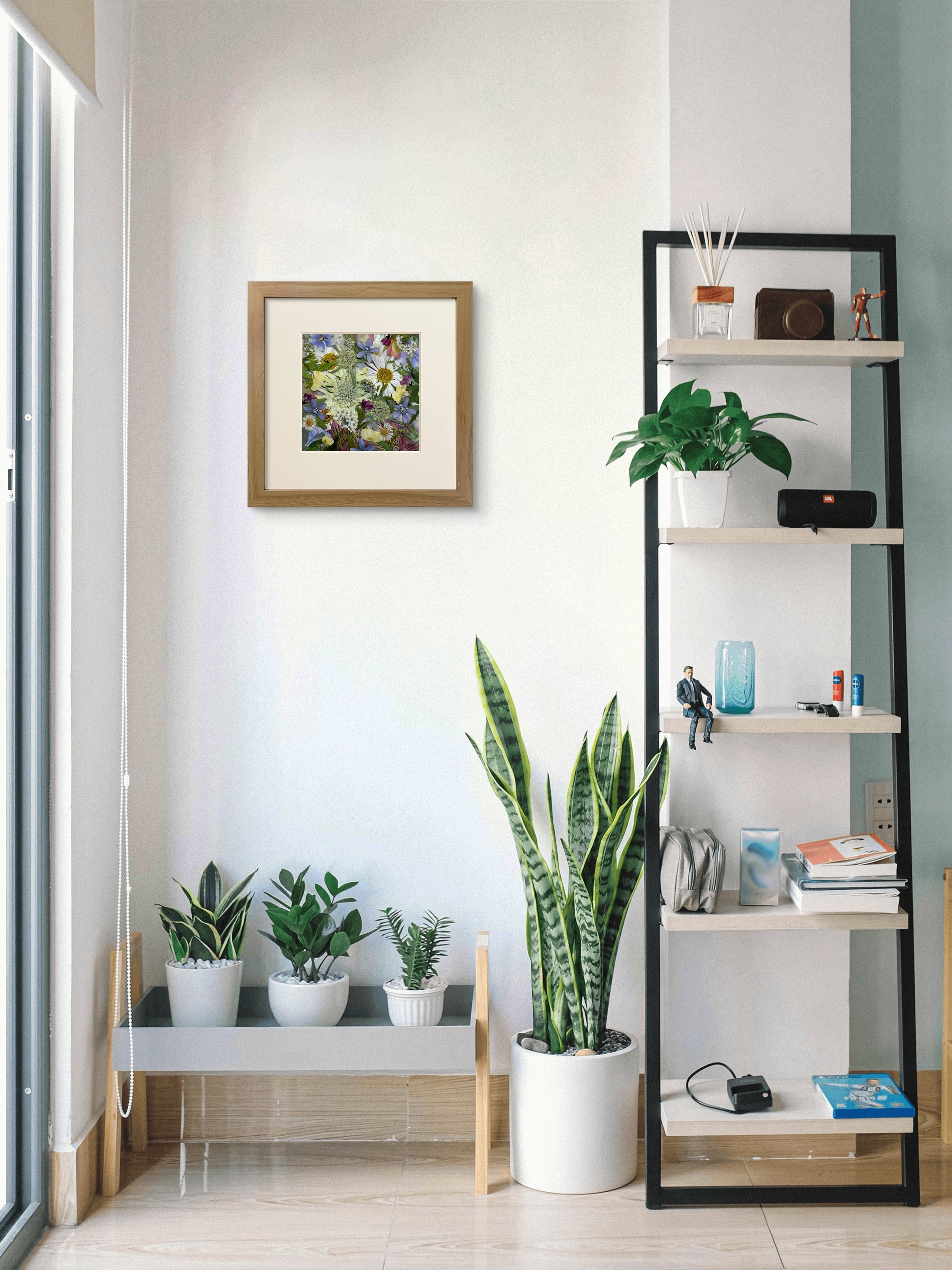 L'œuvre est recouverte d'une plaque acrylique transparente et scellée par un support en aluminium afin d'accroître sa longévité et de préserver sa beauté botanique.