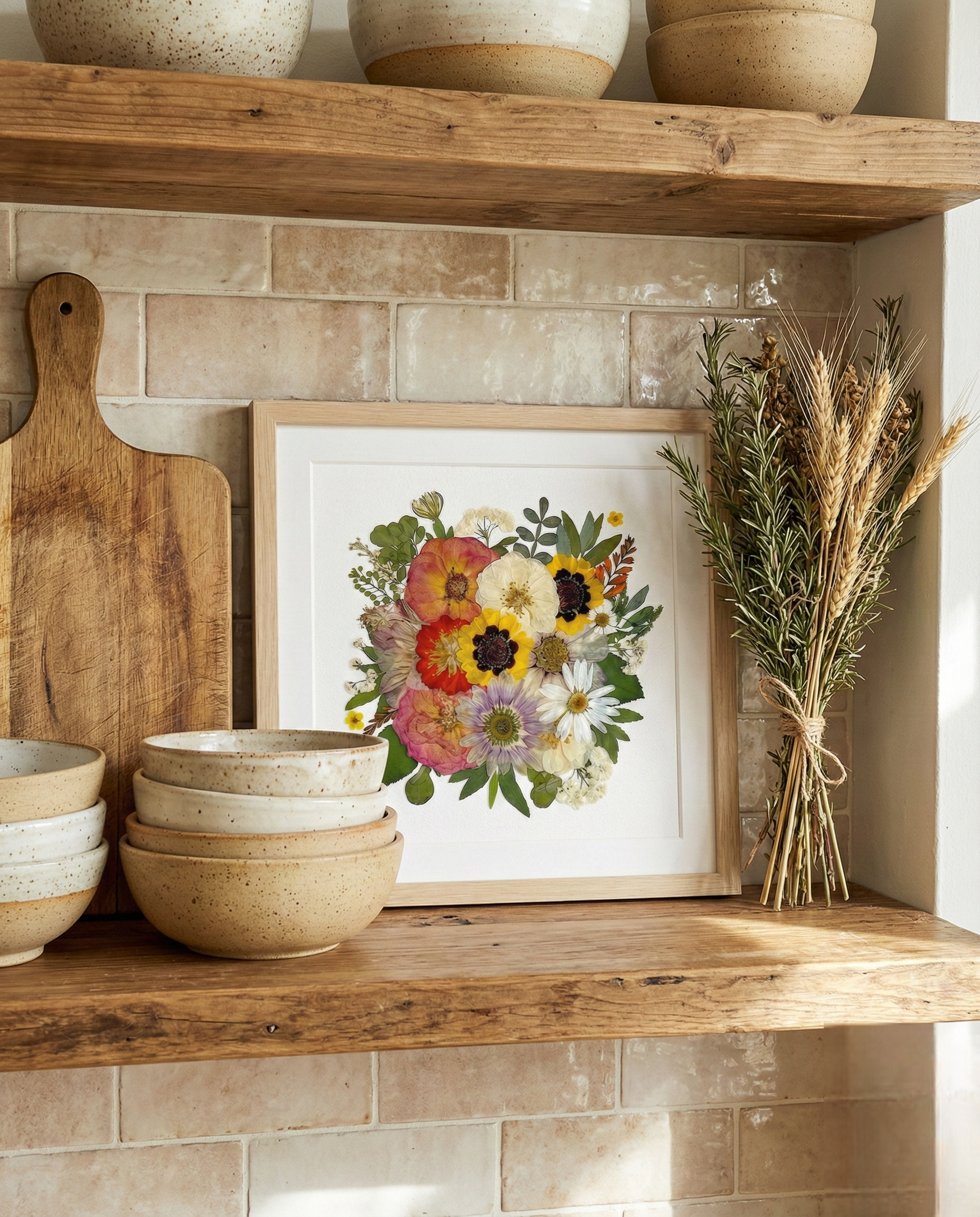 Les images du produit présentent un Cadre 25 x 25 cm. Notre fleuriste dispose et colle soigneusement des pétales de fleurs séchées sur un fond en papier, créant ainsi un motif unique. Chaque pétale provient des plus belles fleurs de saison, méticuleusement sélectionnées et pressé par nos fleuristes qualifiés.