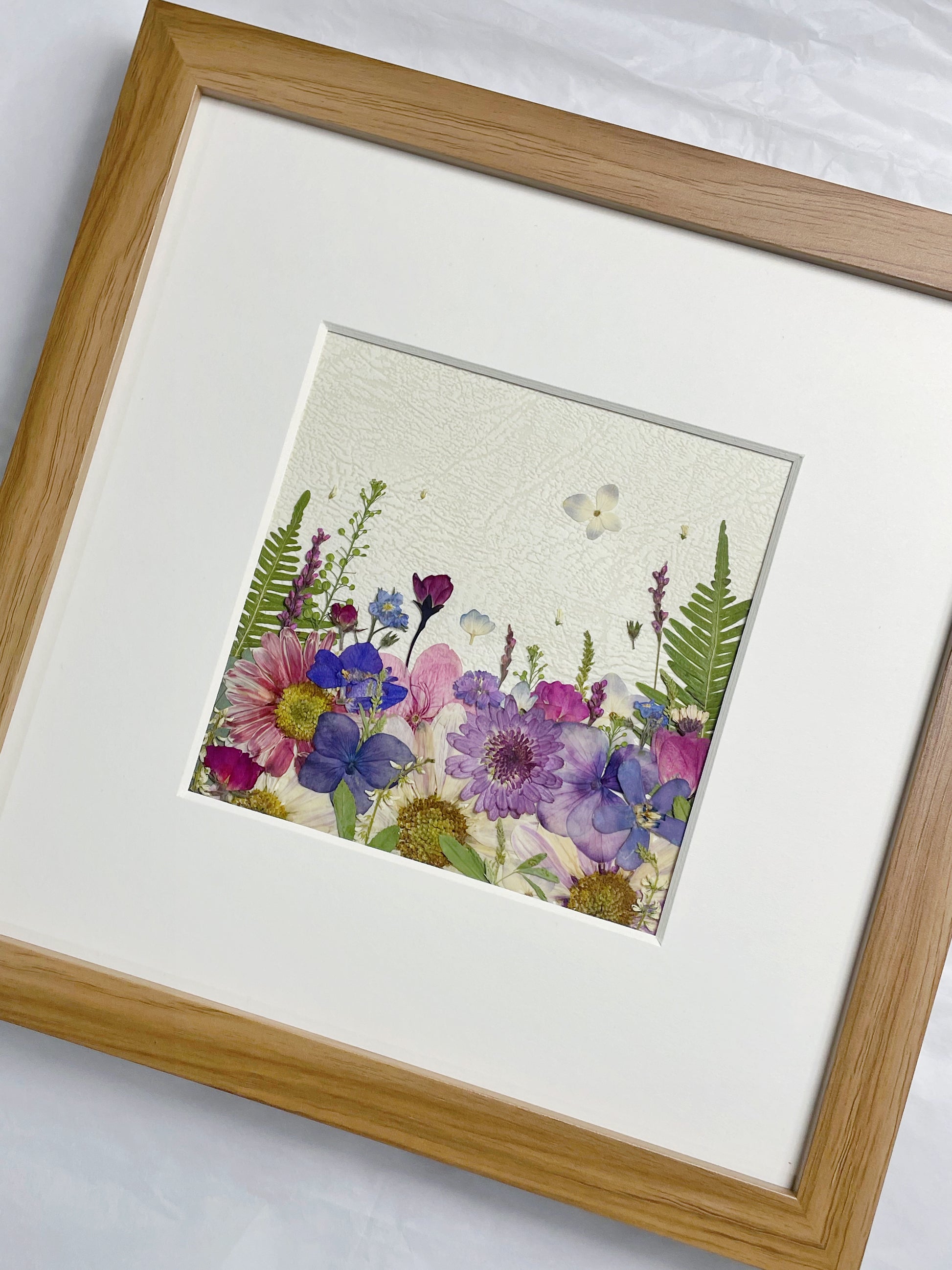 ▪ DÉTAILS DU PRODUIT : Cadre de 25 x 25 cm (10 x 10 pouces) orné de fleurs pressées, idéal pour décorer une table. Nos cadres sont confectionnés avec soin par nos fleuristes, qui sélectionnent avec minutie les plus belles fleurs de saison. Nous utilisons exclusivement des fleurs et des plantes.