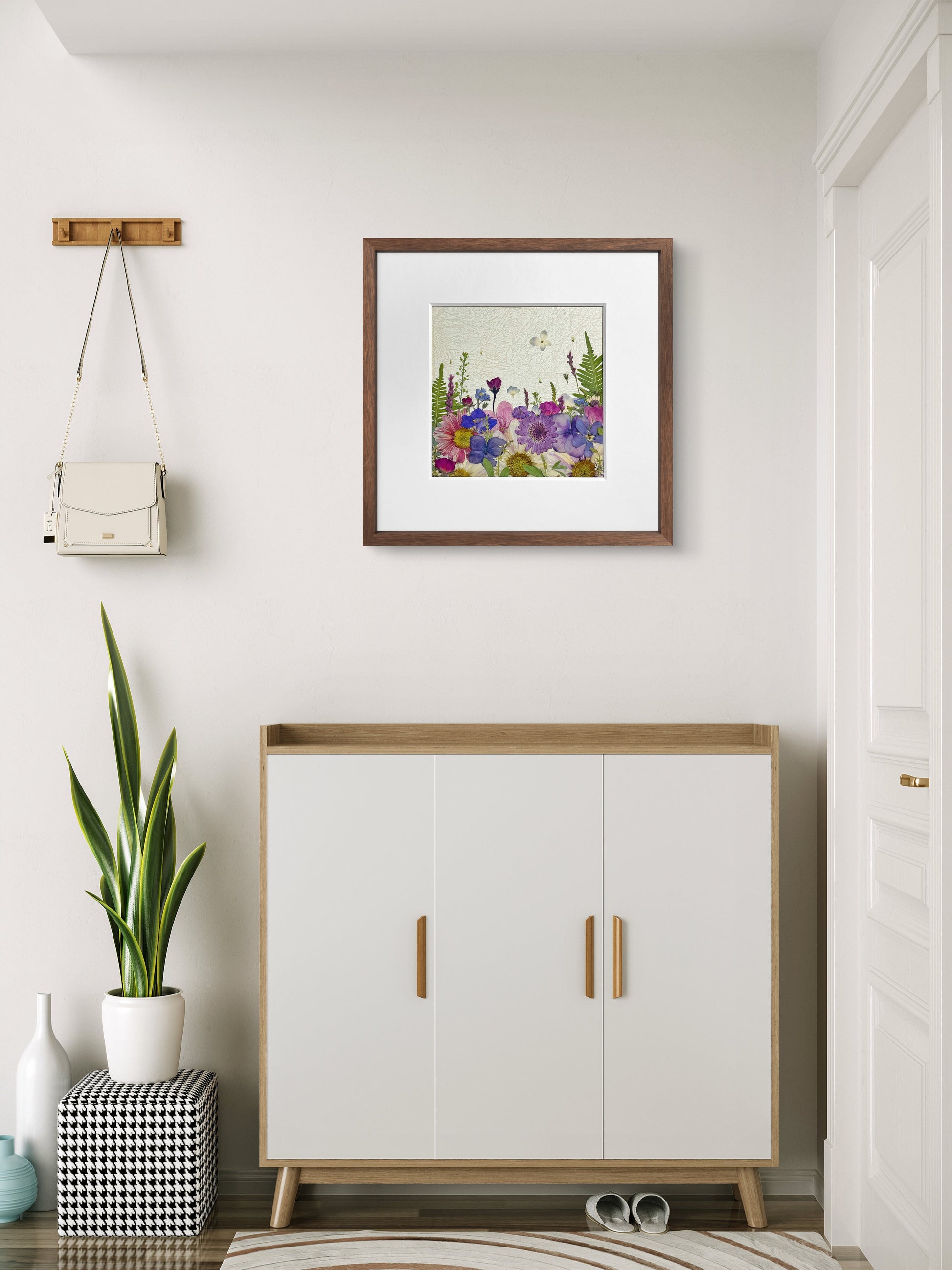 L'œuvre est recouverte d'une plaque acrylique transparente et scellée par un support en aluminium afin d'accroître sa longévité et de préserver sa beauté botanique.