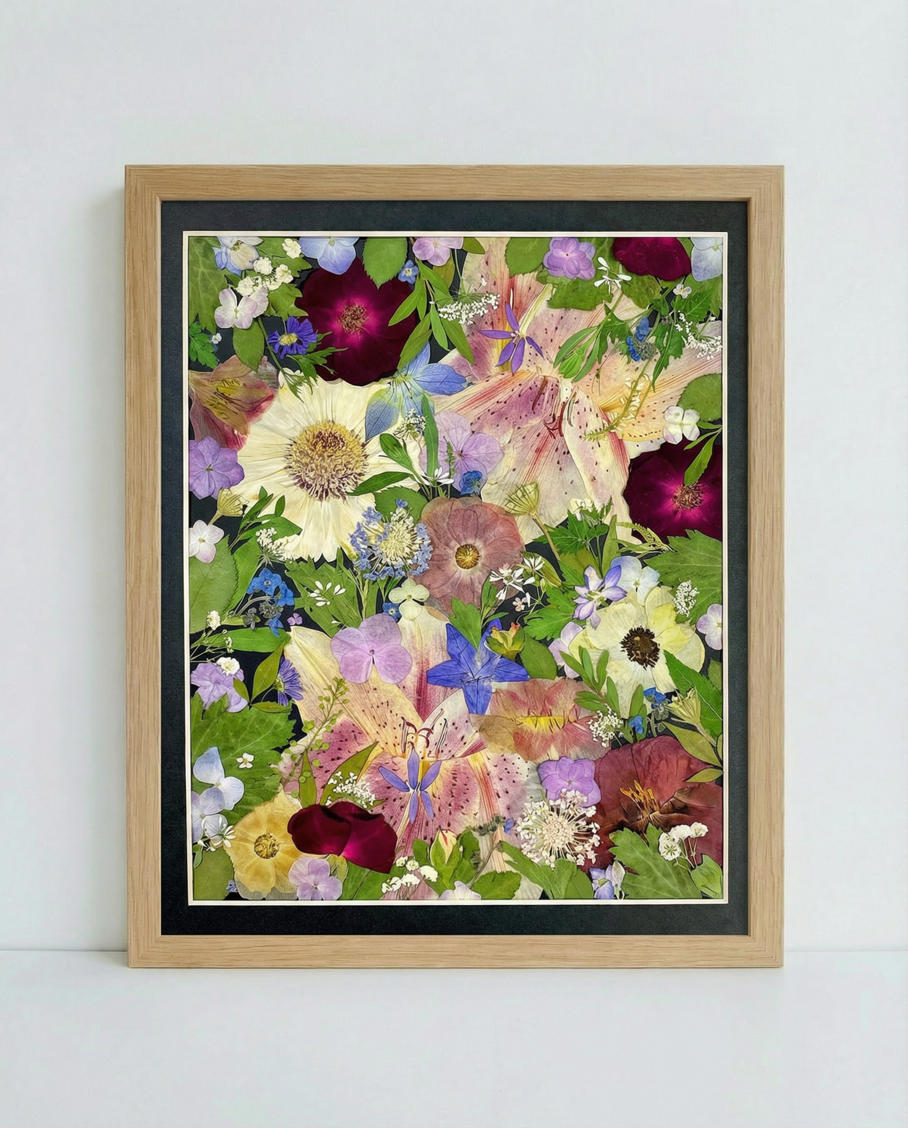 ▪ Détails du produit : Ce petit cadre floral pressé met parfaitement en valeur la composition sur un fond noir, protégé par une plaque acrylique transparente. Nos cadres sont fabriqués en bois massif de qualité supérieure, et nos fleuristes sélectionnent avec soin les plus belles fleurs de saison. Nous utilisons exclusivement des fleurs et des plantes.