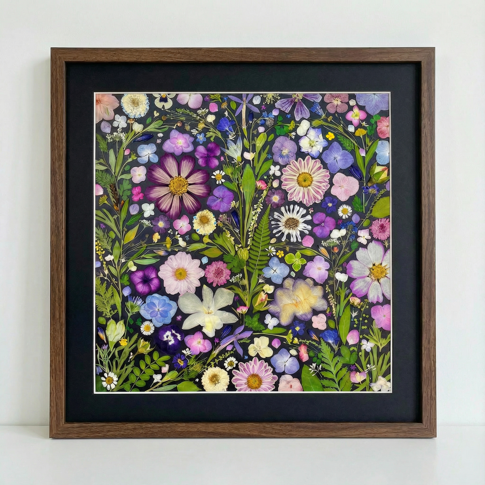 Notre fleuriste dispose et colle avec soin des pétales de fleurs séchées sur un fond en papier, créant ainsi un motif unique. Chaque pétale est issu des plus belles fleurs de saison, sélectionnées avec minutie par nos fleuristes expérimentés.