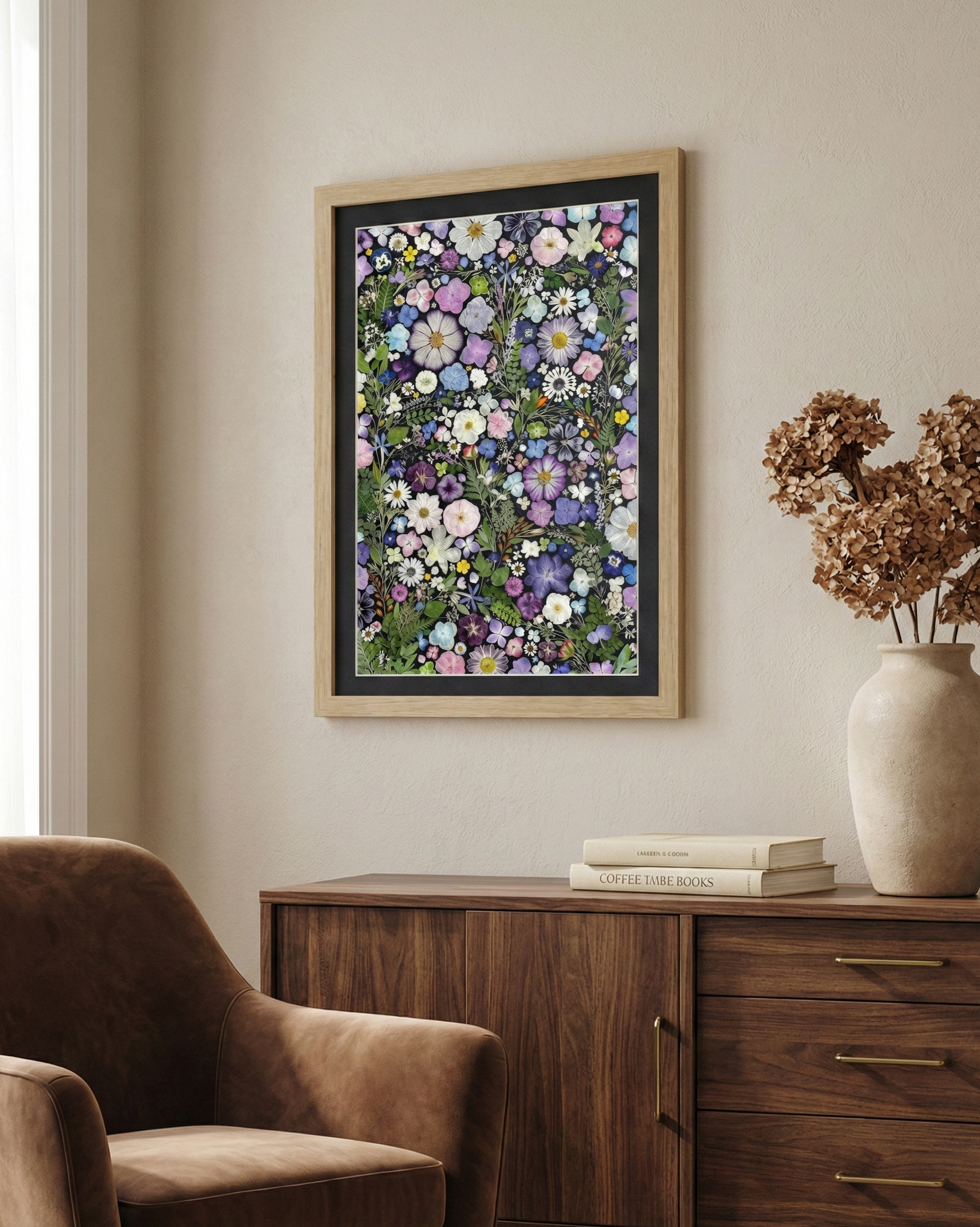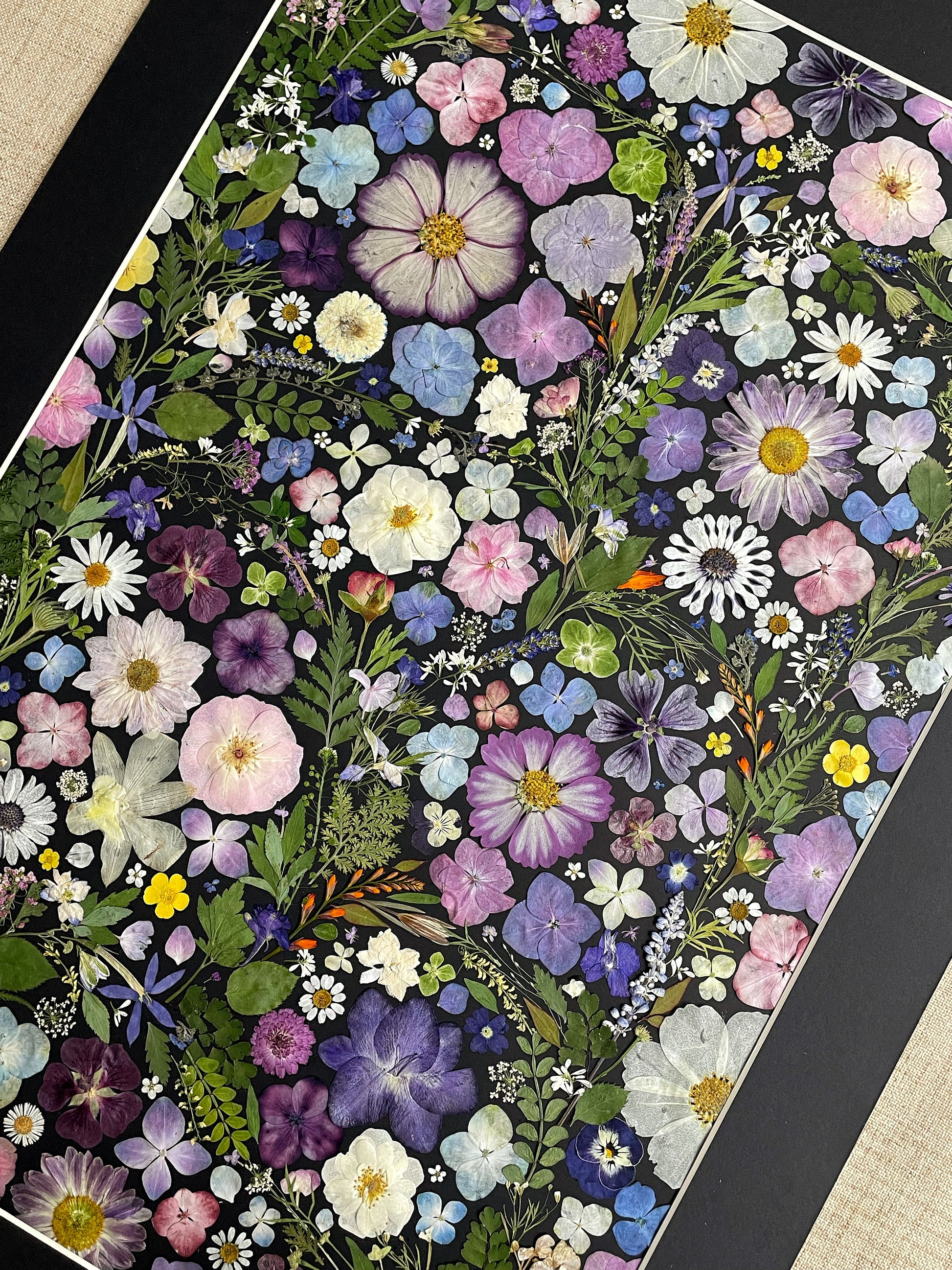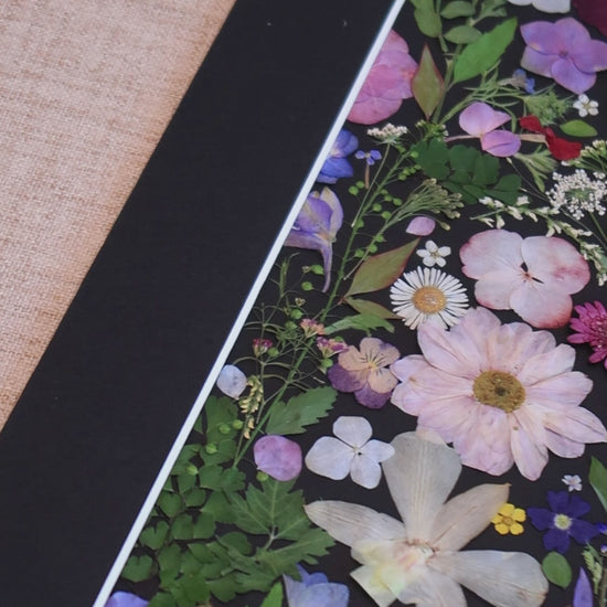 Notre fleuriste dispose et colle avec soin des pétales de fleurs séchées sur un fond en papier, créant ainsi un motif unique. Chaque pétale est issu des plus belles fleurs de saison, sélectionnées avec minutie par nos fleuristes expérimentés.