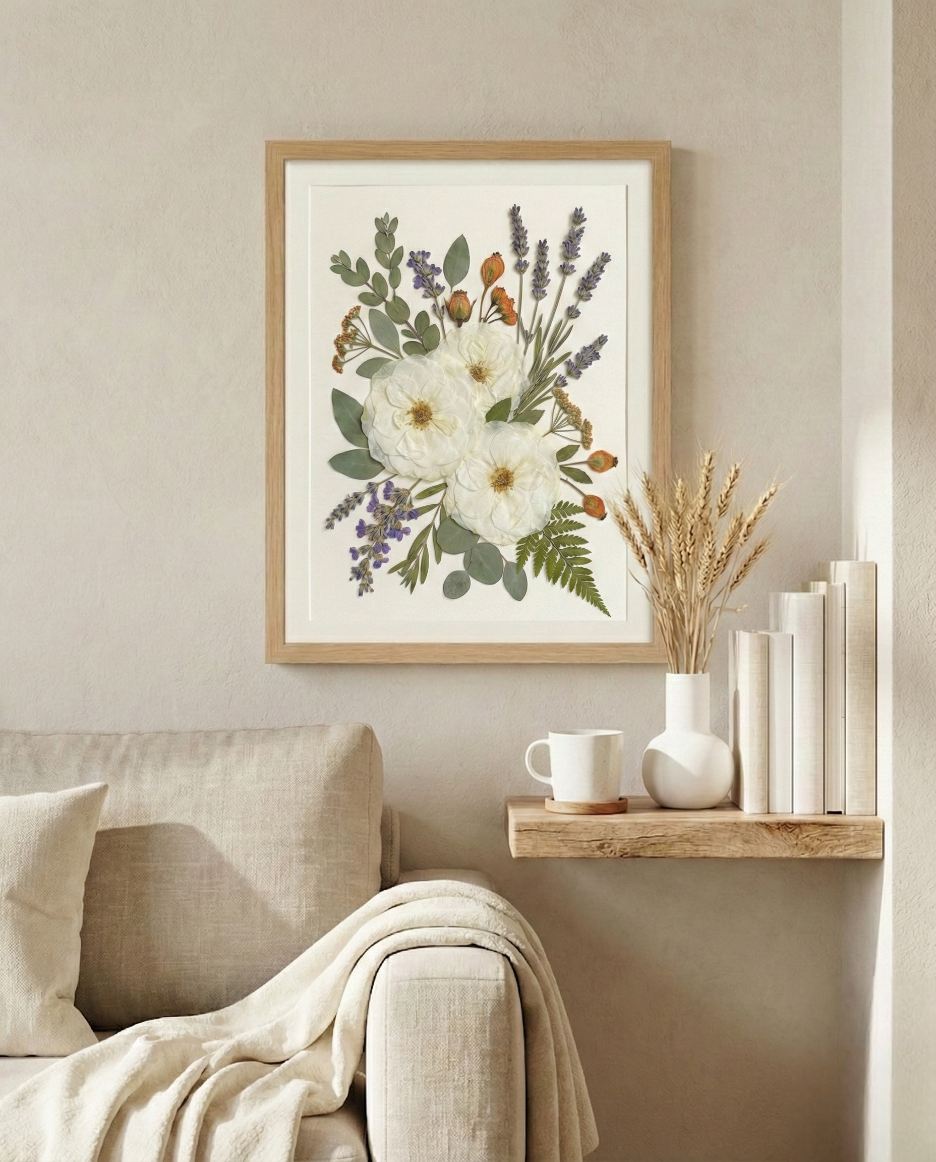 Notre fleuriste dispose et colle avec soin des pétales de fleurs séchées sur un fond en papier, créant ainsi un motif unique. Chaque pétale provient des plus belles fleurs de saison, méticuleusement sélectionnées et pressées par nos fleuristes expérimentés.