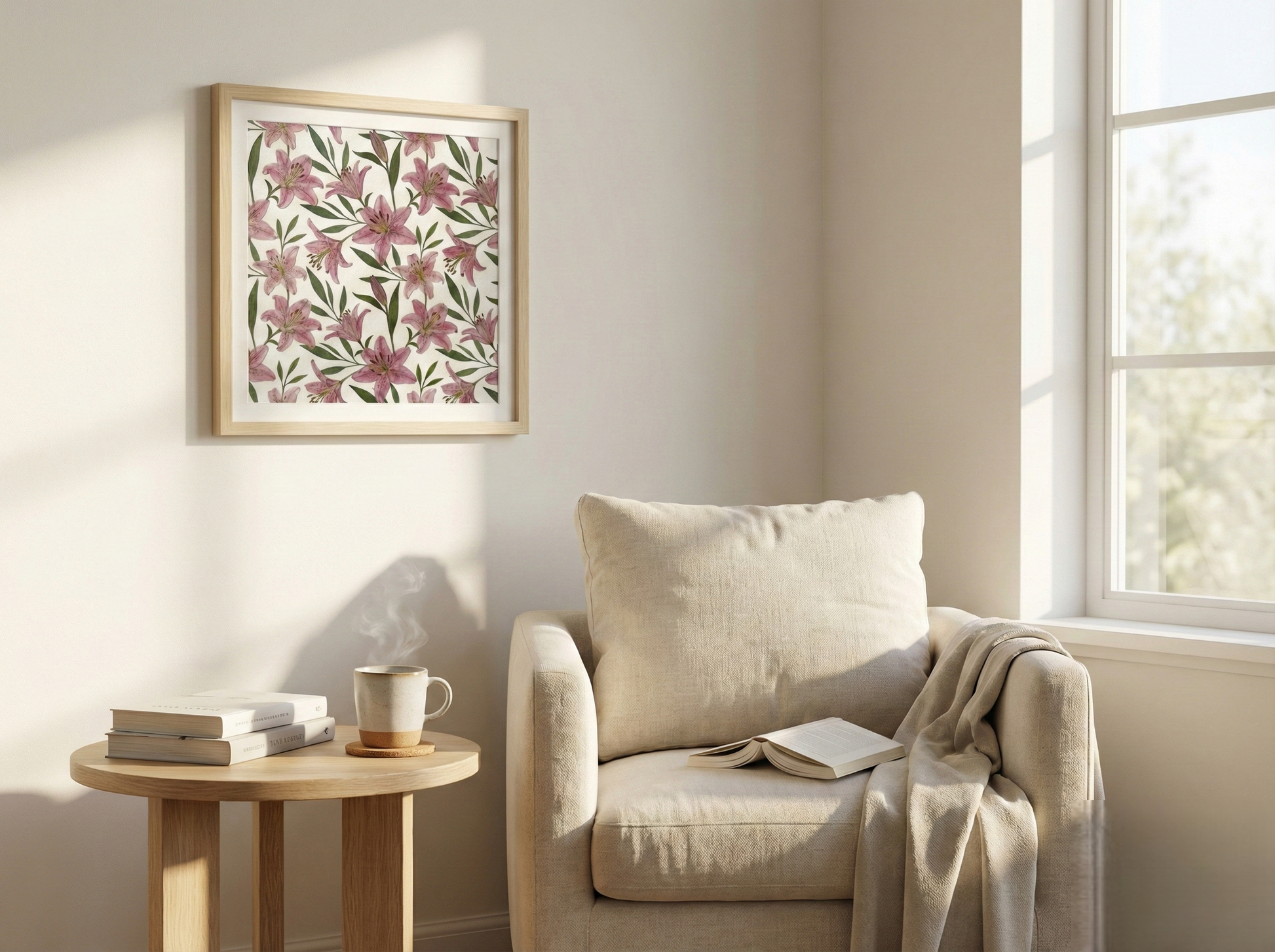 ▪ Matériaux : Lys roses avec des feuilles de lys élancées et des boutons de lys non éclos.