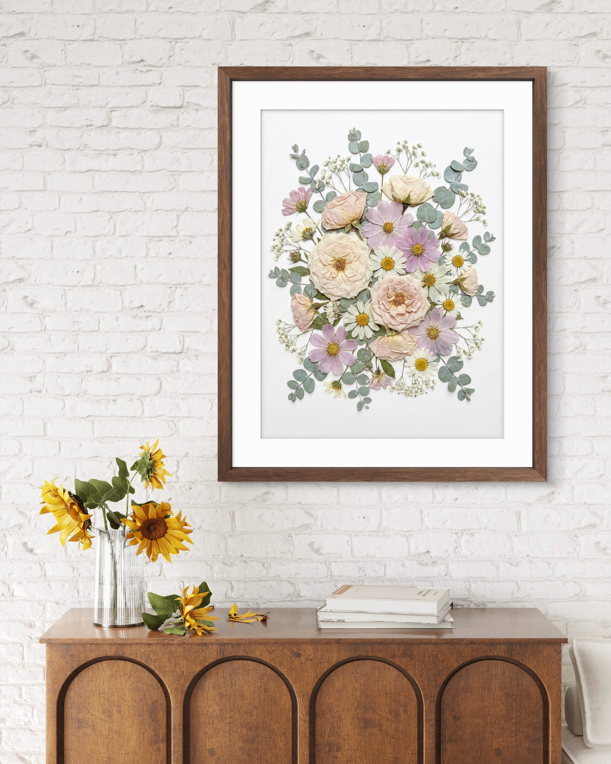 Le cadre que vous avez commandé a été réalisé par le fleuriste de la composition originale.