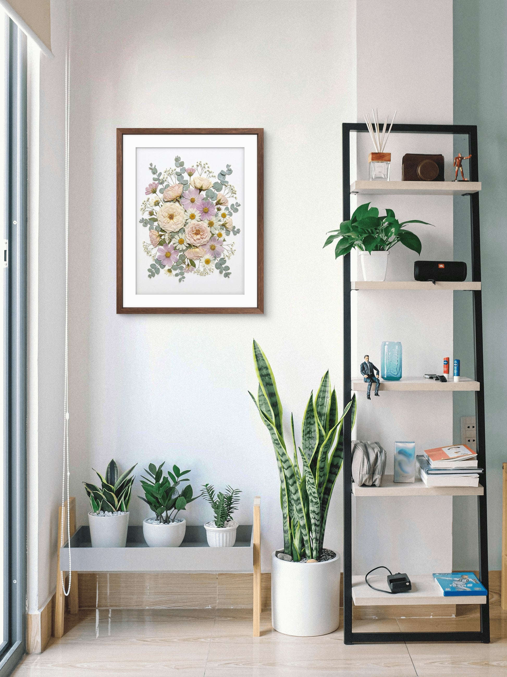 L'œuvre est recouverte d'une plaque acrylique transparente et scellée par un support en aluminium afin d'accroître sa longévité et de préserver sa beauté botanique.