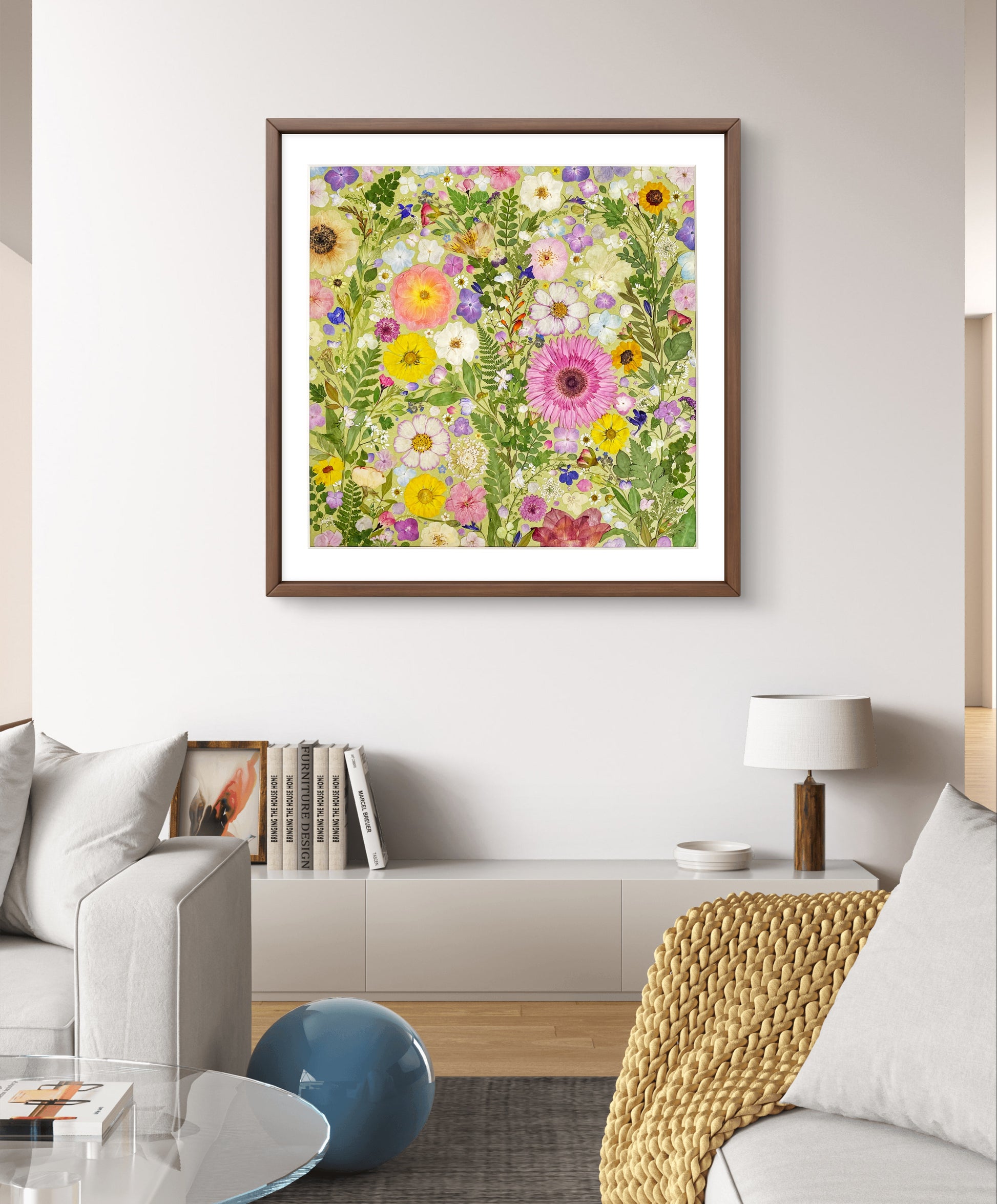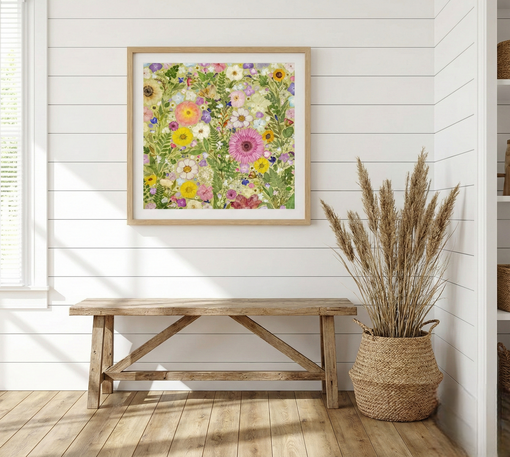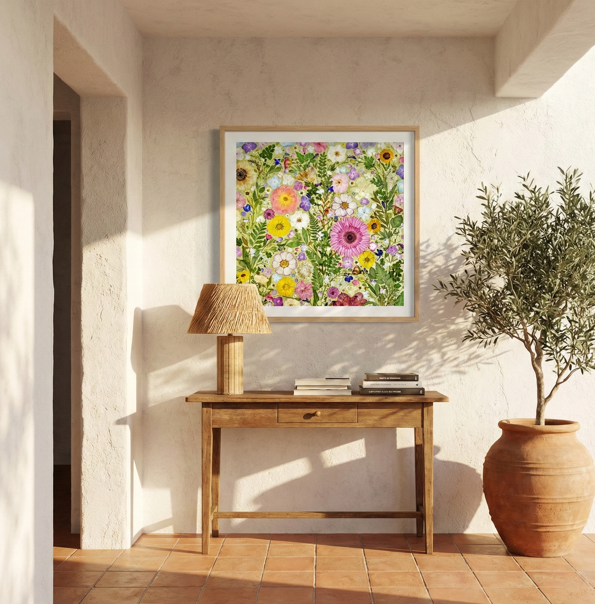 L'œuvre est recouverte d'une plaque acrylique transparente et scellée par un support en aluminium afin d'accroître sa longévité et de préserver sa beauté botanique.