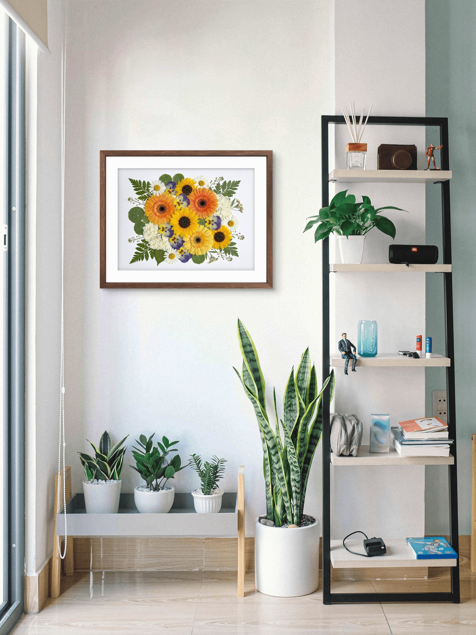 L'œuvre est recouverte d'une plaque acrylique transparente et scellée par un support en aluminium afin d'accroître sa longévité et de préserver sa beauté botanique.
