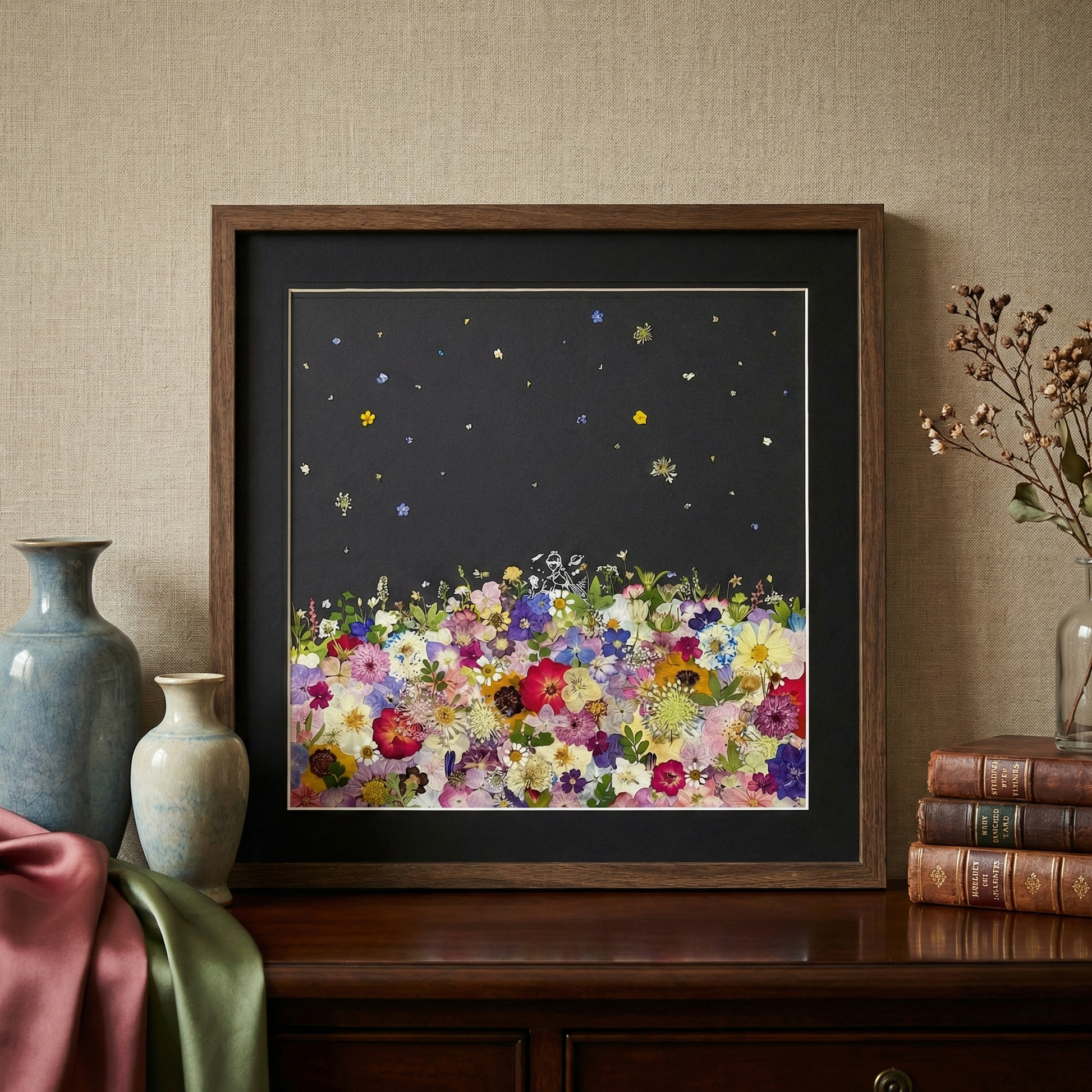 ▪ Détails du produit : Il s'agit d'une œuvre d'art encadrée de fleurs pressées. Notre fleuriste dispose et colle soigneusement des pétales de fleurs séchées sur un papier de fond, créant ainsi un motif unique. Chaque pétale provient des plus belles fleurs de saison, méticuleusement sélectionnées et pressé par nos fleuristes qualifiés.