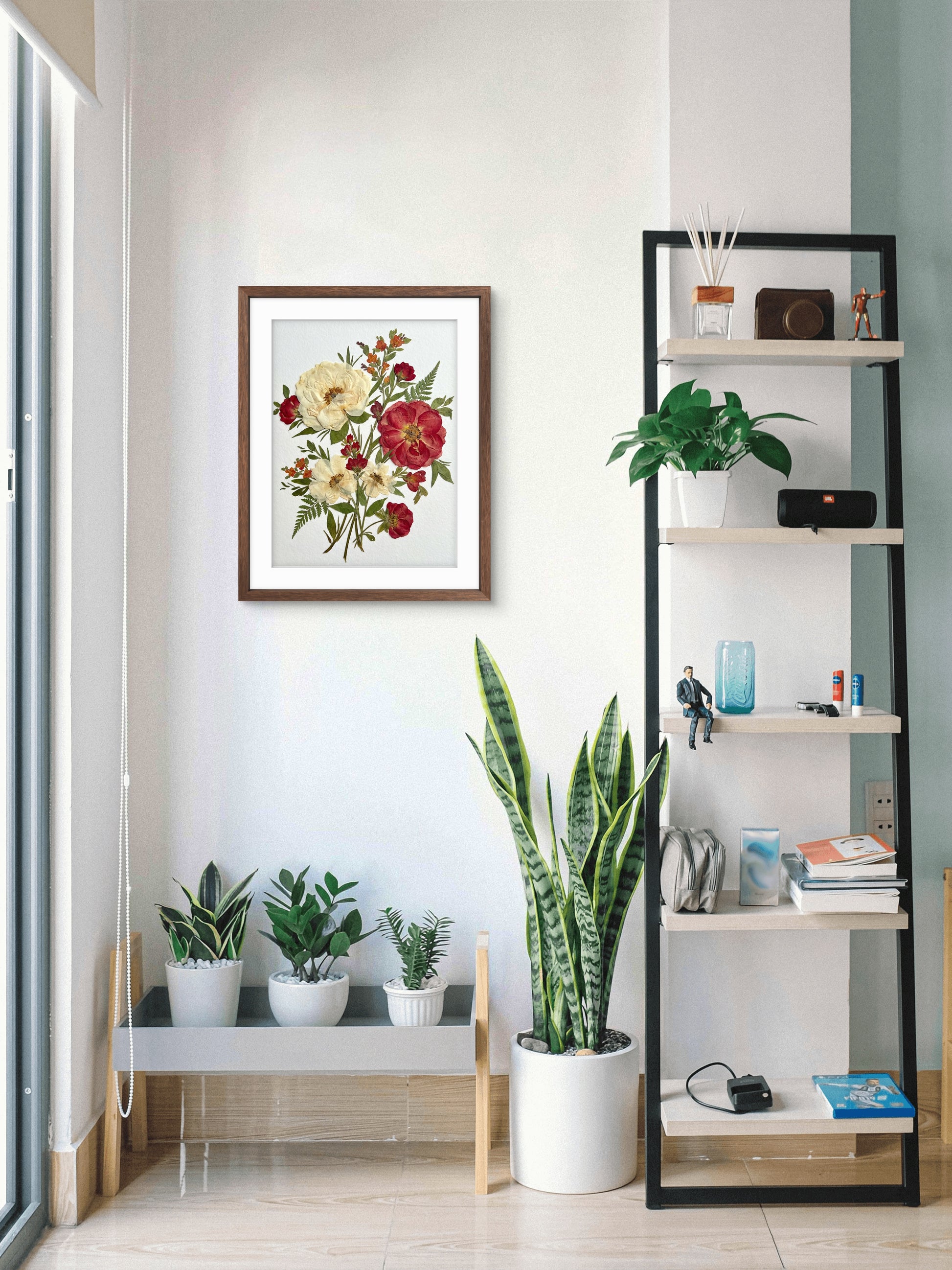 L'œuvre est recouverte d'une plaque acrylique transparente et scellée par un support en aluminium afin d'accroître sa longévité et de préserver sa beauté botanique.